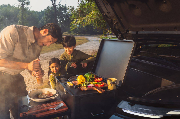 此外,全车共设计 50 处储物空间及 12 个取电口。前备厢容积 176 升,采用全封闭电动开启结构,内部集成 220V 电源,具备防泼溅与可冲洗特性,官方还提供拓展配件,可快速转换为露营料理台或观景平台。