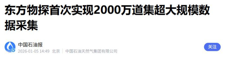 中国石油报 2026-01-05——东方物探首次实现2000万道集超大规模数据采集