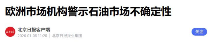 北京日报客户端 2026-01-06——欧洲市场机构警示石油市场不确定性